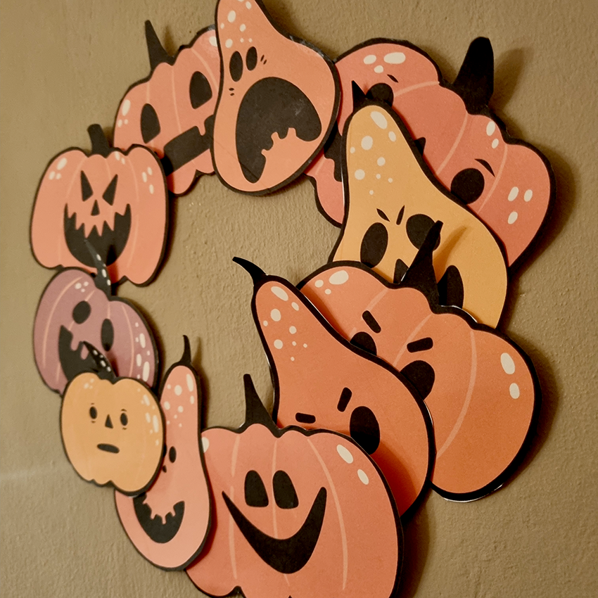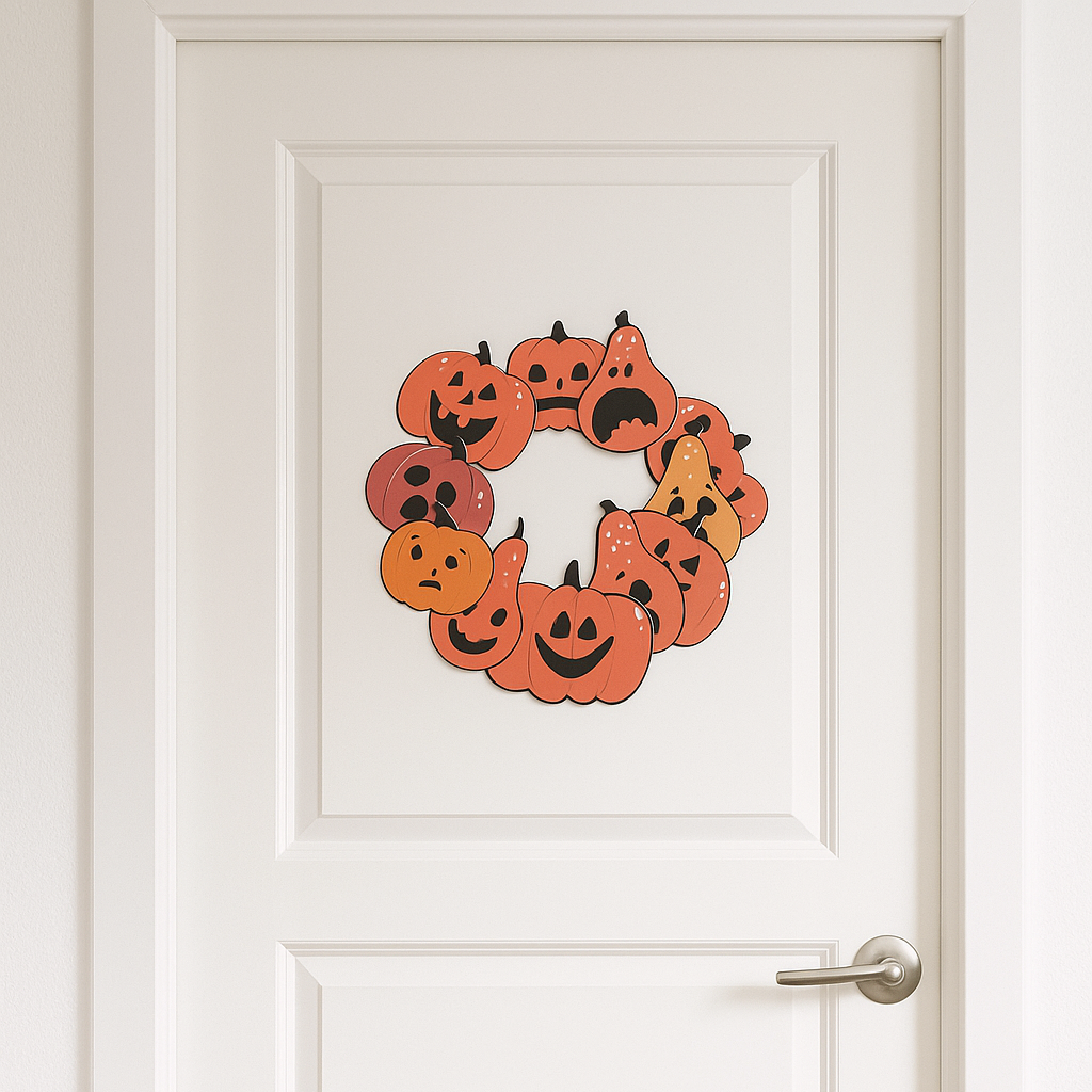Kürbis-Kranz basteln mit Kindern – Halloween Bastelvorlage zum Ausdrucken | PDF
